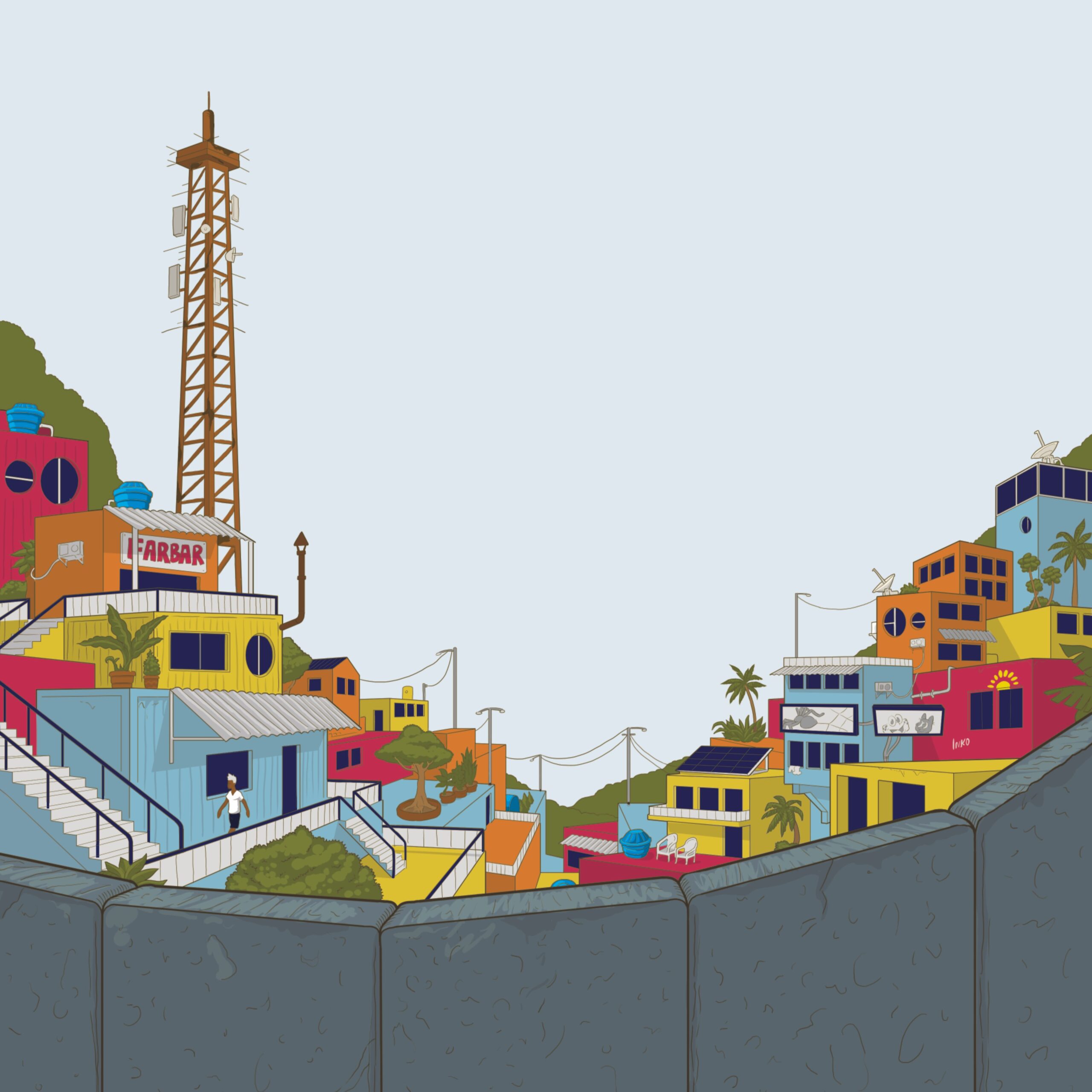 “Uma favela muito limpa, arborizada, com alguma sofisticação tecnológica, biossustentável e solarpunk.”