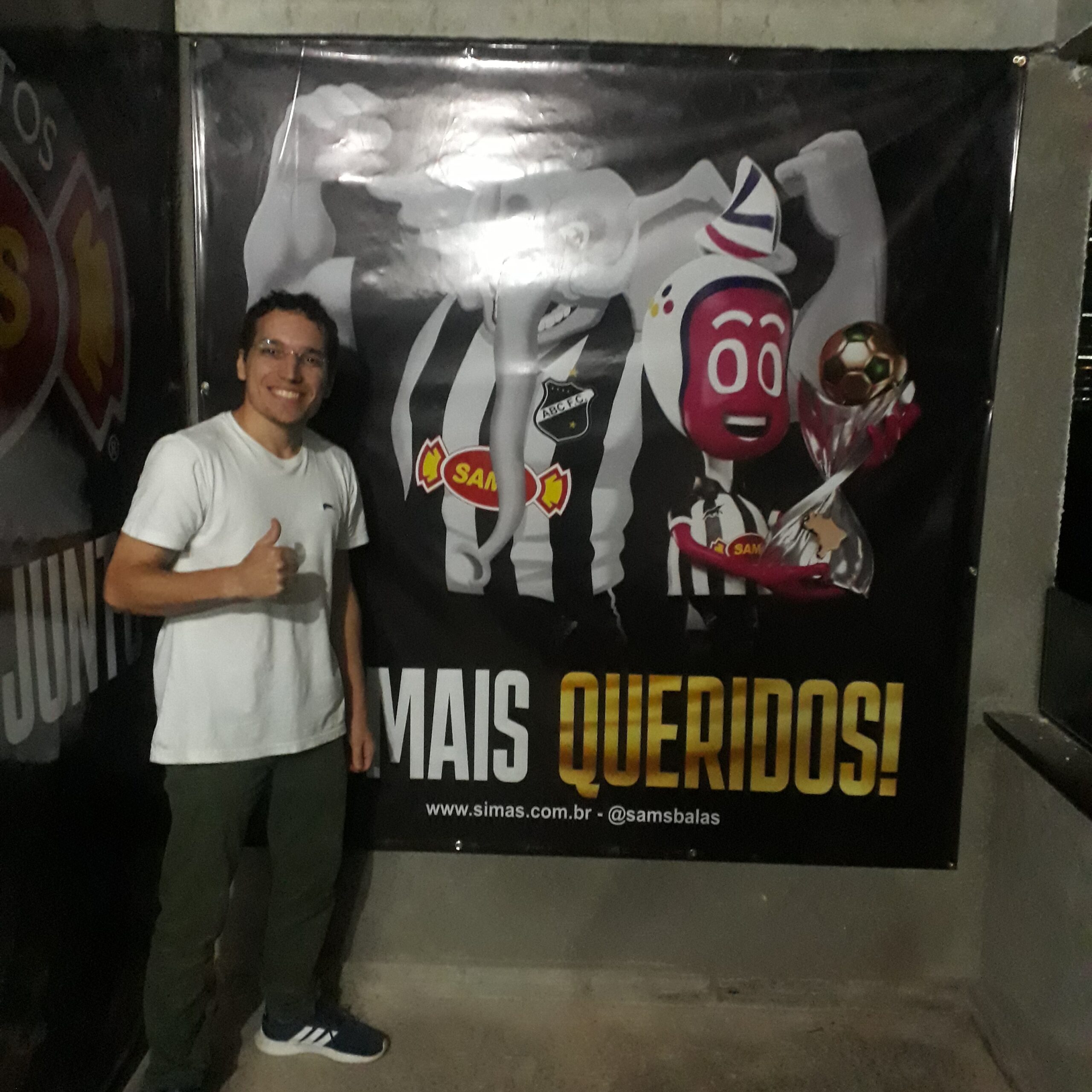 Fomos la no estádio medir todos os painéis, que eram do tempo que os bicho falava e já estavam desbotados. Juntou a minha empolgação de trabalhar o mascote em poses dinâmicas no tema com a do Kleber que é ABCdista doente e tava cheio de ideias. Mesmo debaixo do sol do meio dia, aproveitei o ensejo e cruzei o gramado de ponta a ponta correndo-foi gostoso demais!